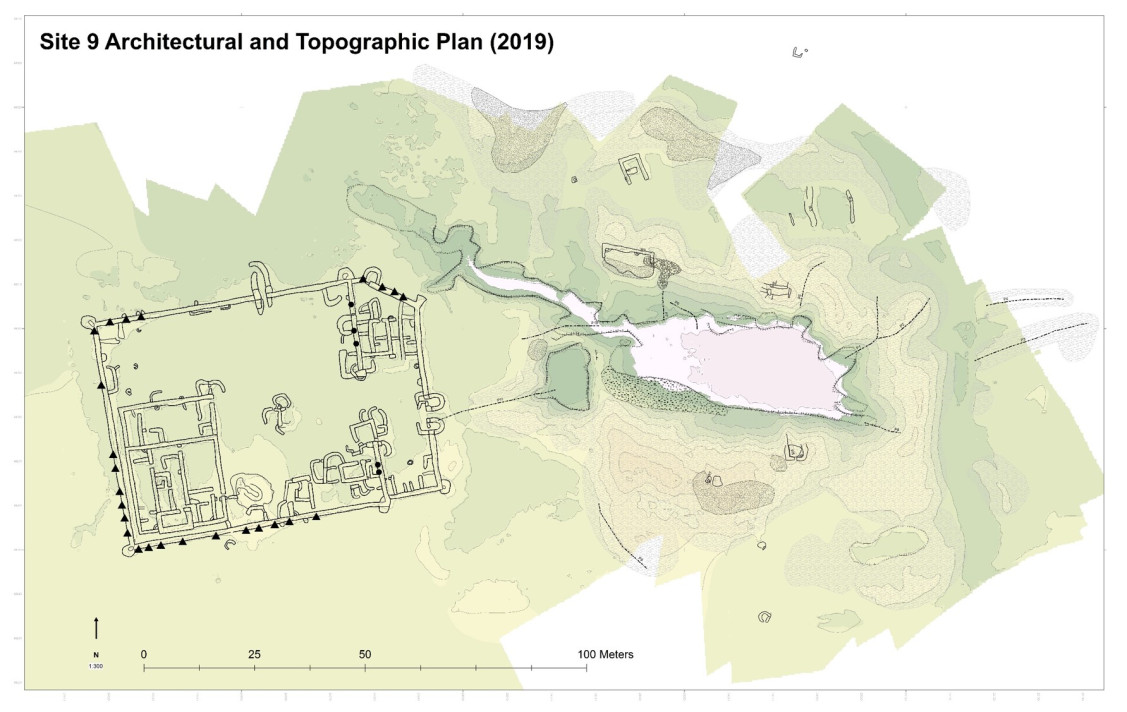 El asentamiento incluye tres principales áreas que Ian Shaw denominó áreas A, B y C. El área A se encuentra al suroeste y consiste en dos edificios muy bien construidos que pudieron servir como casa, espacio administrativo o de almacenaje para altos oficiales. El área B se encuentra en la zona este del asentamiento y fue una ampliación del yacimiento 9 realizada por una expedición posterior. Según el plano del asentamiento, el área B fue una zona de almacenaje y administrativa, que esperamos poder investigar en futuras campañas. El área C es, principalmente, un patio abierto con pequeñas estructuras en medio de este; estas serían multifuncionales. Asimismo, hay evidencias de presencia de estelas (fragmentos de piedra tallados e inscritos) en el yacimiento 9.