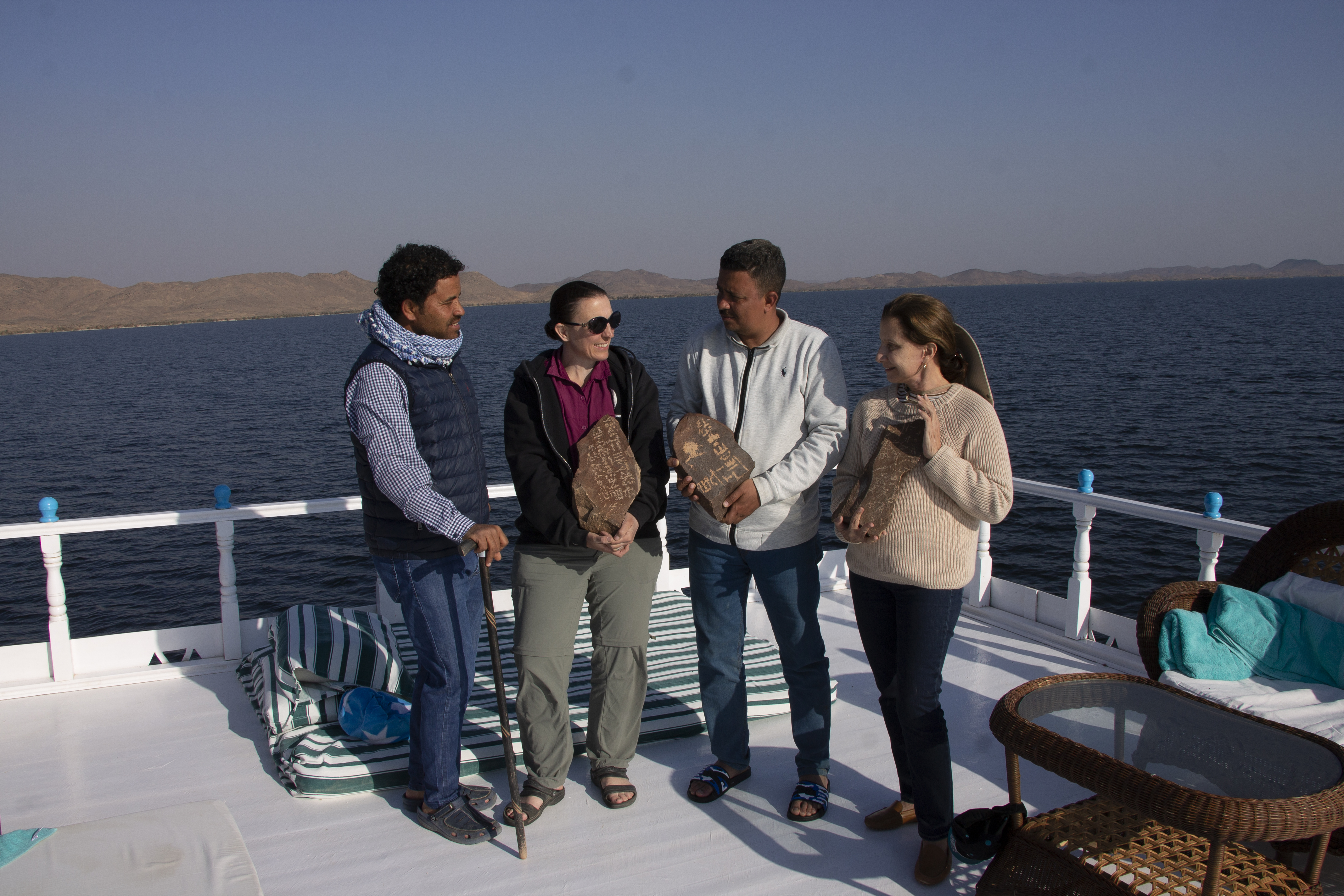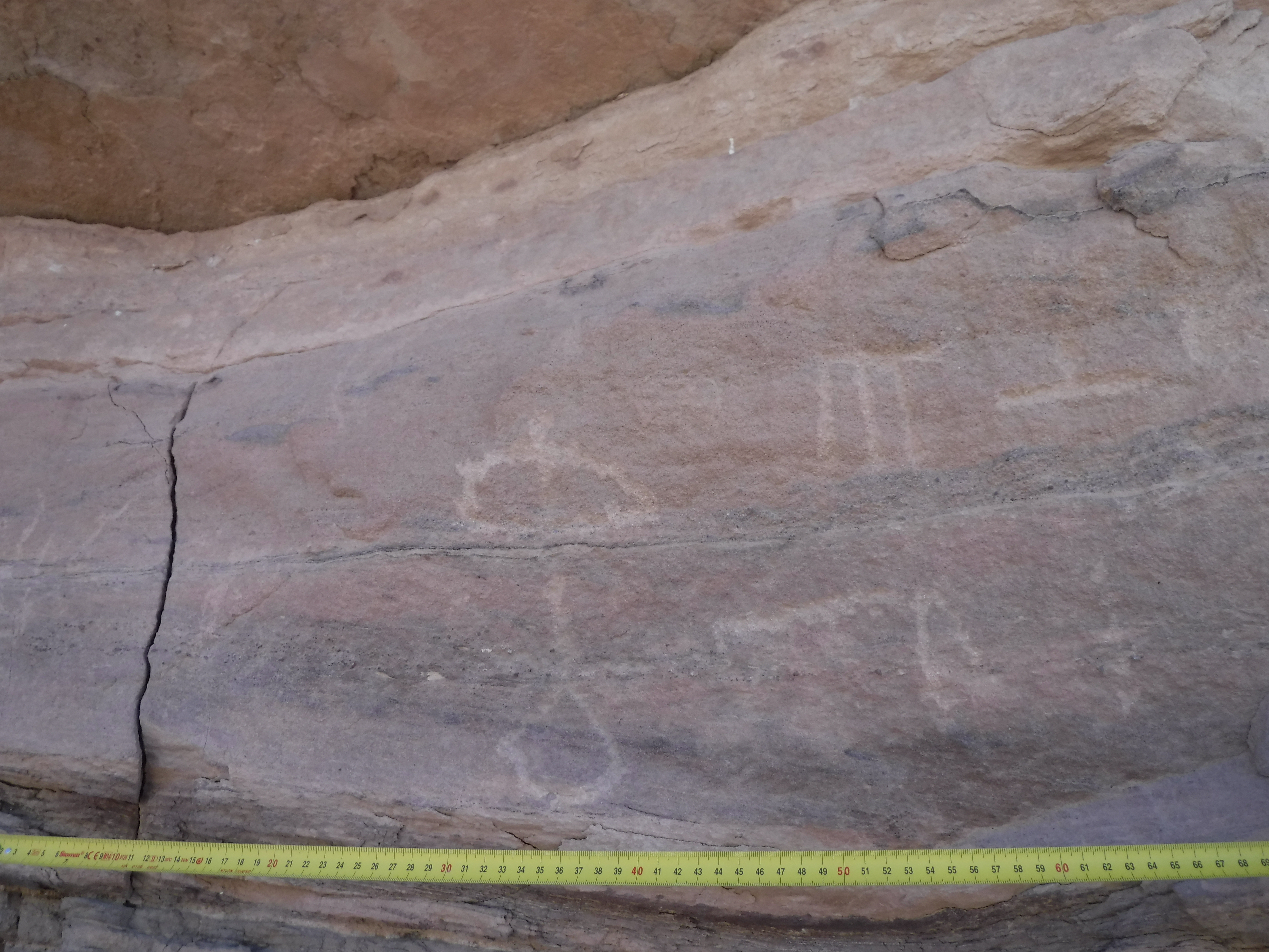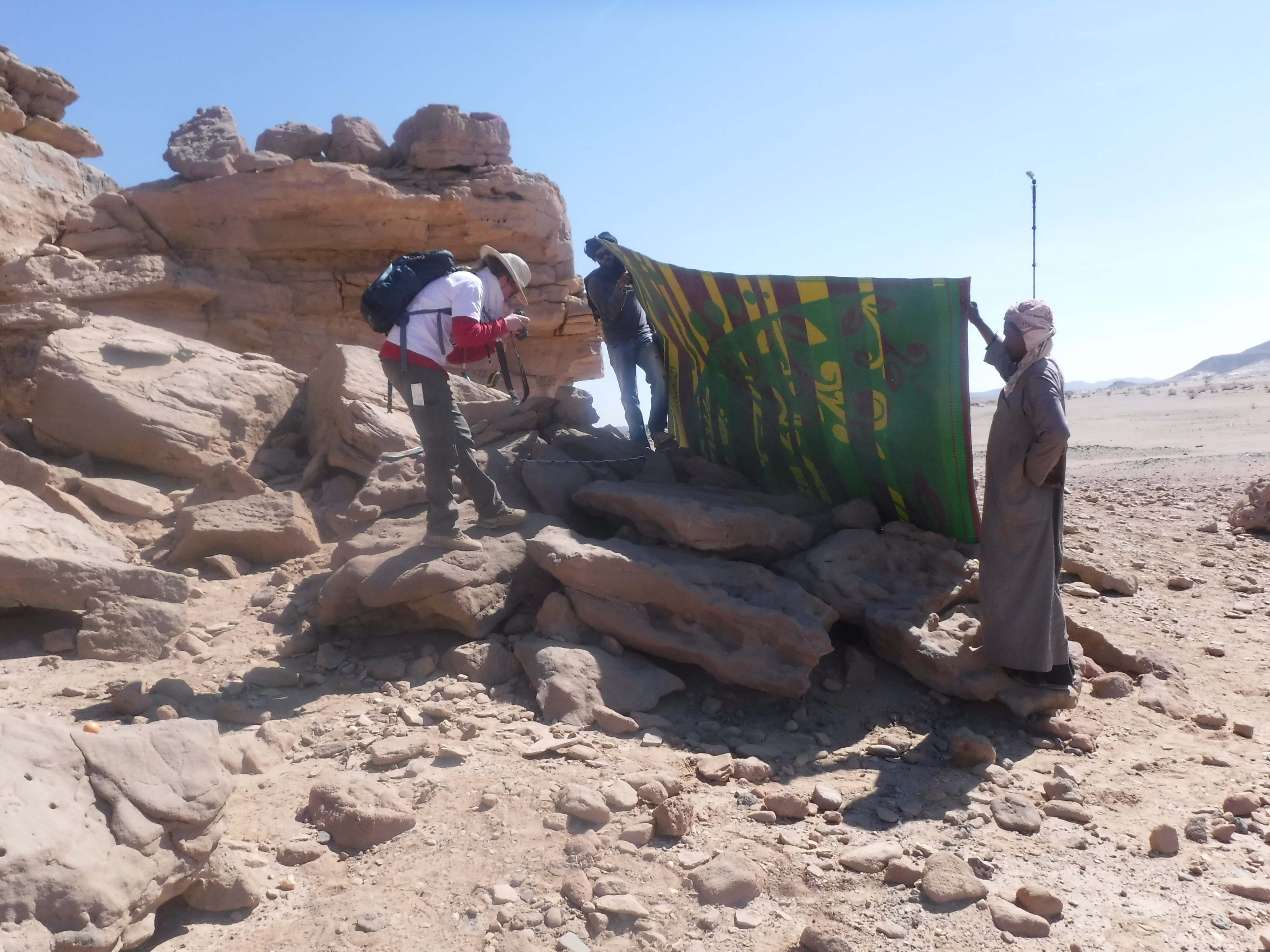 Cuando dimos con el yacimiento 51 en enero de 2023, pensamos que éramos los primeros en descubrirlo porque no es mencionado por Ahmed Fakhry ni otros. Pero pronto nos sorprendió saber que fue descubierto en la década de 1930. El yacimiento 51 fue visitado por primera vez por el explorador y diplomático alemán Hansjoachim von der Esch, según relata en su diario de viaje Weenak – die Karawane ruft. Cuando una inesperada tormenta de arena se levantó, él y su equipo de guías bisharin se refugiaron en el yacimiento 51 por dos días y observaron sus abundantes inscripciones de petroglifos. De hecho, es posible que fueran ellos quienes tallaron allí dos inscripciones en árabe que datan de 1938. Sin embargo, no fueron ni mucho menos las primeras personas en vivir allí.