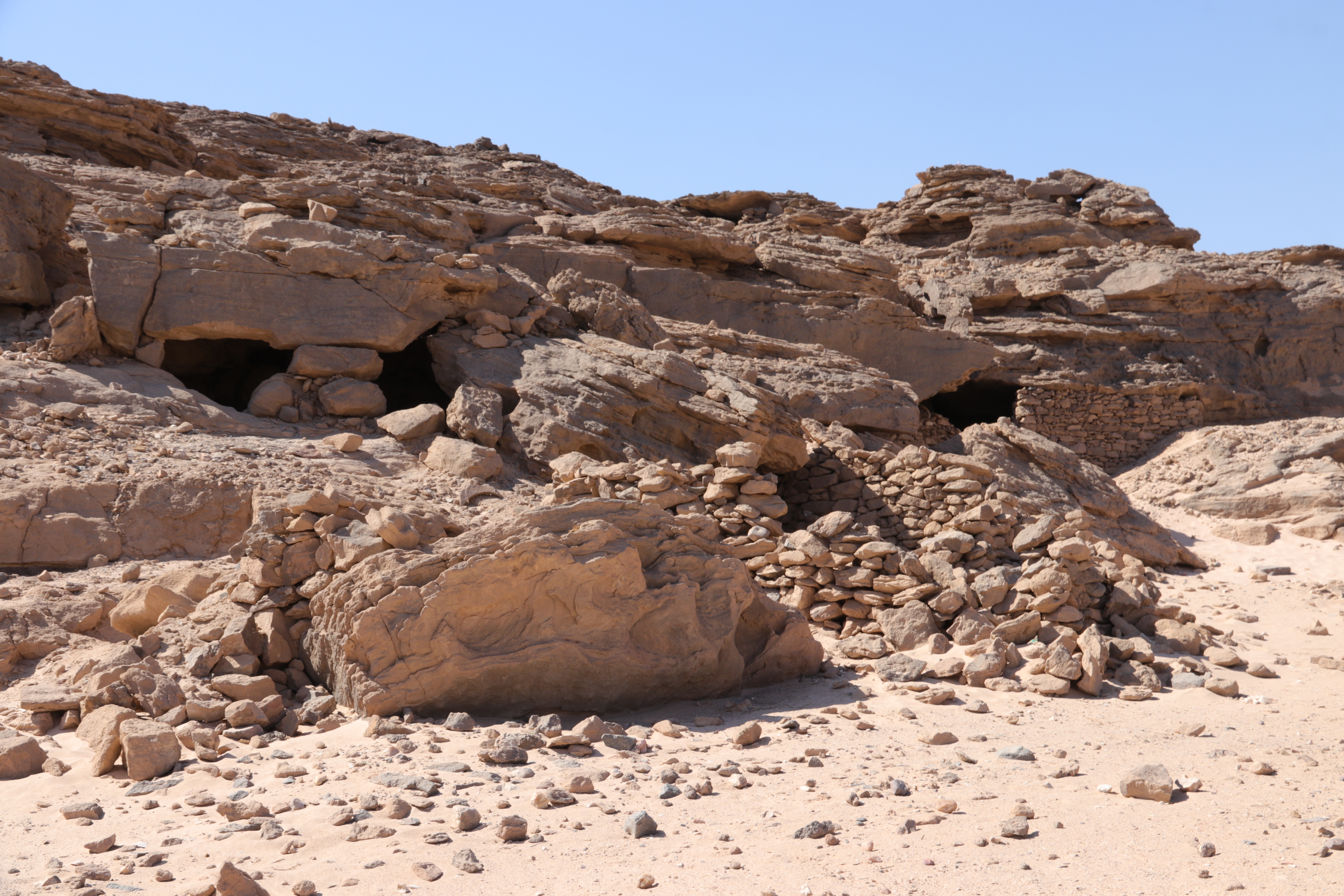 Dihmit Sur es quizás el mayor asentamiento fortificado y complejo de minería del Reino Medio localizado en el desierto al sureste de Asuán. James Harrell y Robert Mittelstadt lo descubrieron por primera vez en 20137y, en enero de 2023 nos convertimos en el primer equipo arqueológico en realizar un estudio preliminar de la región. Dihmit Sur es notablemente similar a los yacimientos 5 y 9 de Wadi el-Hudi, tanto que los mismos administradores, trabajadores y transportistas de la línea de suministros pueden haber facilitado todos estos lugares. La mayor parte de la ocupación de Dihmit Sur ocurrió a lo largo de todo el Reino Medio, incluso hasta la XIII dinastía. No obstante, también hay evidencia de bajos niveles de ocupación o de visitas de corta duración durante el Reino Nuevo, los períodos Ptolemaico y Romano y el período Islámico.